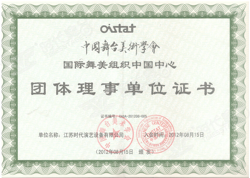 陜西省舞臺(tái)美術(shù)協(xié)會(huì)理事單位證書(shū)